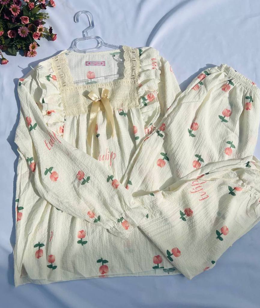 بلوز و شلوار آستین بلند 🔸 فریسایز مناسب 36 تا 44 🔸 جنس موسلین باکیفیت و راحت 🍭دارای طرح های مختلف 💫دمپا شلوار وآستین کشی قدبلوز ۶۵ قد شلوار۹۵